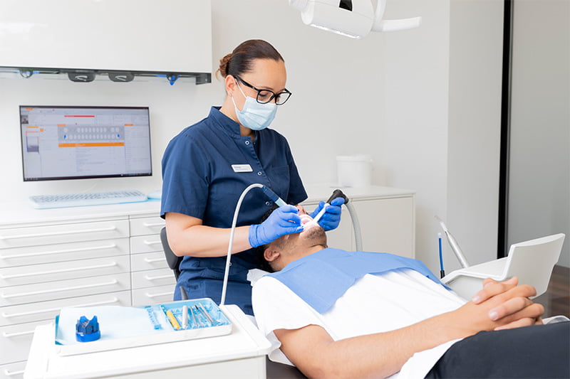 Door de mondhygiënist uitgevoerde behandelingen bestaan o.a. uit: